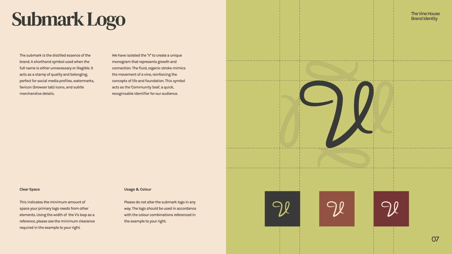 The Vine House needed to feel like the stable, nurturing centre of something. It needed to be a brand that could hold future initiatives within the same family without those initiatives losing their own identity. The identity was built to function that way from the ground up.